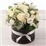 描述: 3枝白玫瑰,2枝白色喷花玫瑰,1枝白色蜡花/石膏花,2枝婆婆纳,2枝白色重瓣洋桔梗,黑色盒装。