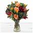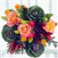 描述: 3株紫色芸苔属植物、3株玫瑰、2株橙色红花、1株红色百合组成。