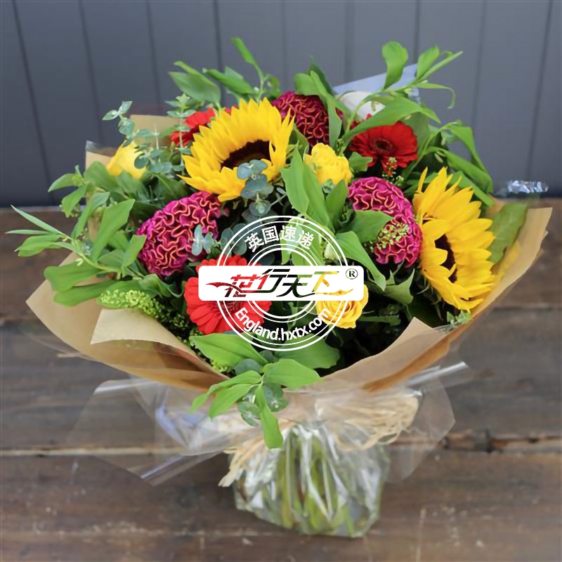 向日葵和其他时令花卉组成(装有养护水).