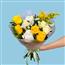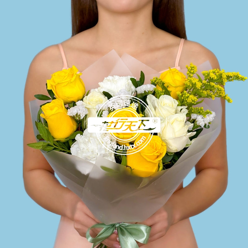 描述: 黄玫瑰、白玫瑰、绿叶组成。