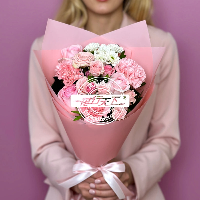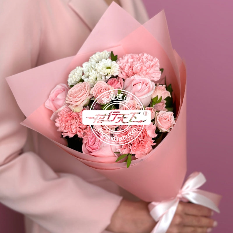 描述: 粉玫瑰、康乃馨、小玫瑰组成。
