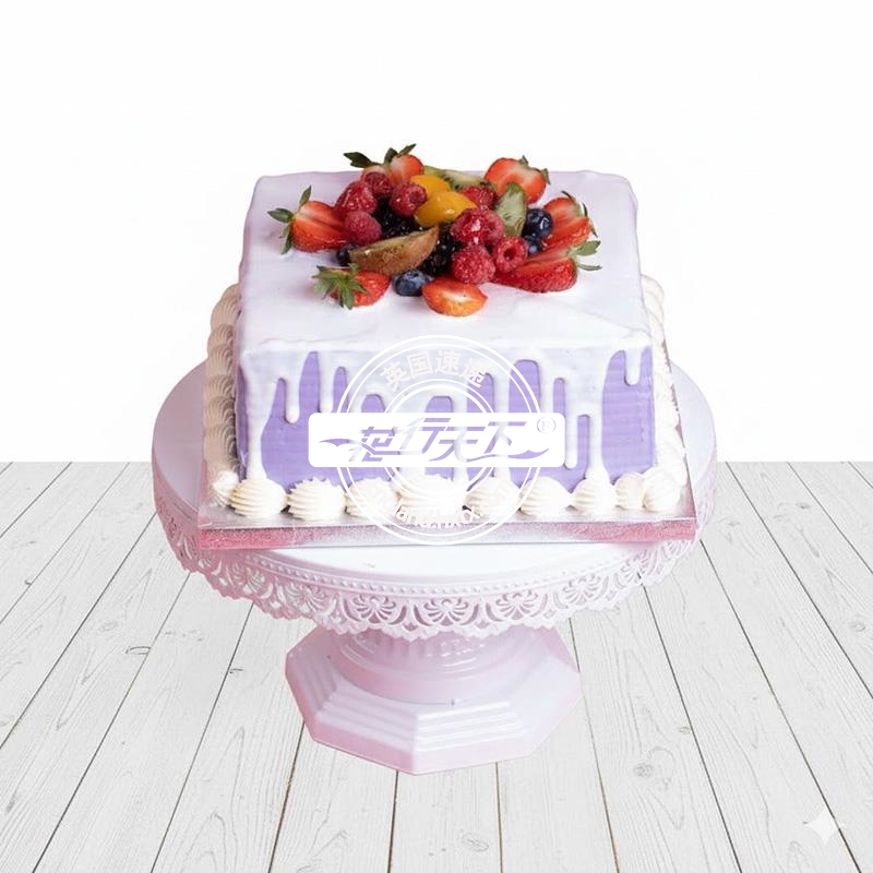 描述: 8寸薰衣草滴落蛋糕、样式如图。