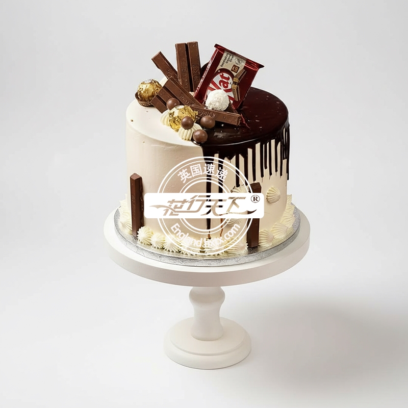 描述: 8寸KitKat巧克力滴落塔蛋糕、样式如图。
