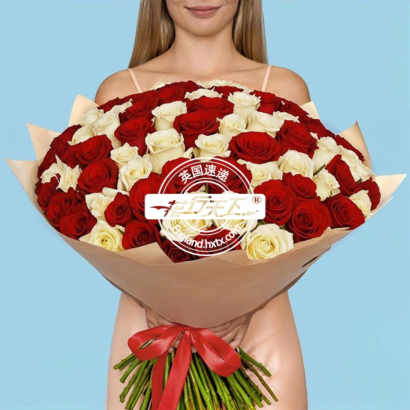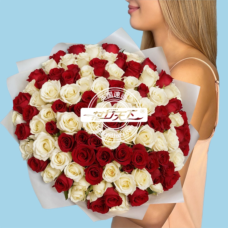 英国鲜花-100枝红玫瑰+白玫瑰 编号:GH003642
