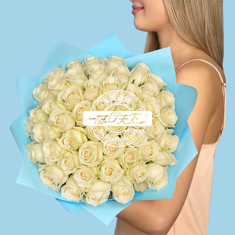 英国鲜花-50枝白玫瑰 编号:GH003647