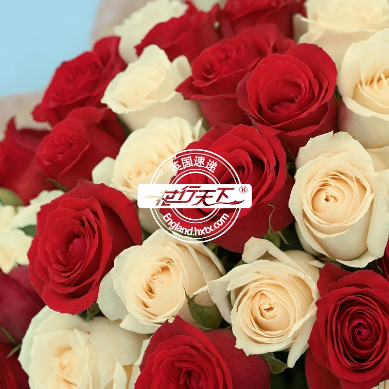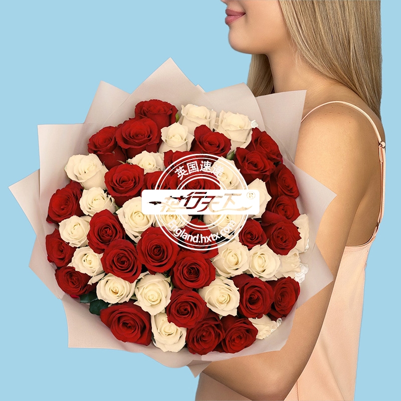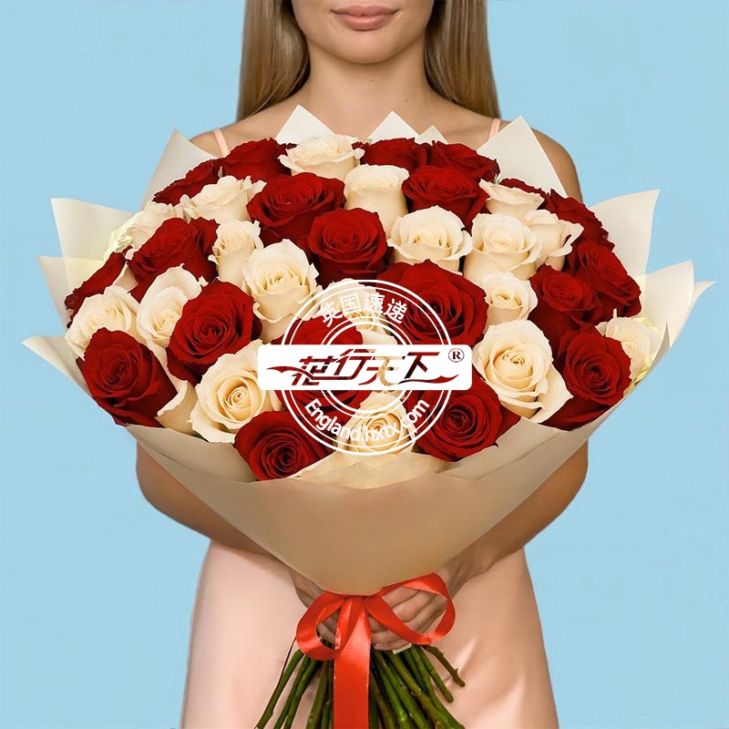 英国鲜花-50枝红白混合玫瑰