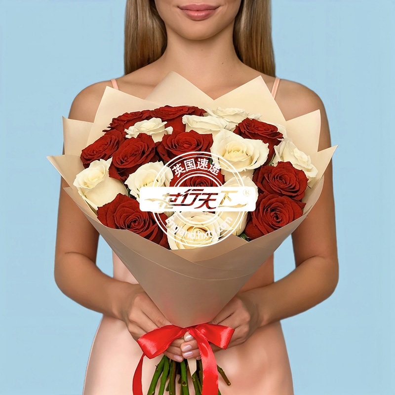 英国鲜花-20枝红白混合玫瑰
