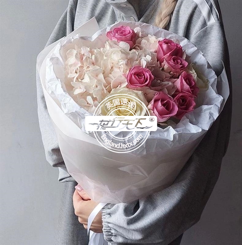 描述: 粉玫瑰、白玫瑰、绣球花组成。